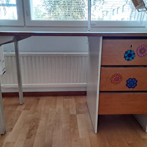 Yhdellä vetolaatikolla varusteltu Ikean koulupöytä, hyvässä kunnossa, ostettu noin 5 vuotta sitten. Malli ei muistissa.