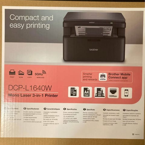 Brother DCP-1612W monitoimilaser-tulostin mustavalkoinen. Laite tarjoaa tulostus-, skannaus- ja kopiointitoiminnot. Sopii kotitoimistokäyttöön tai pieneen yrityskäyttöön.