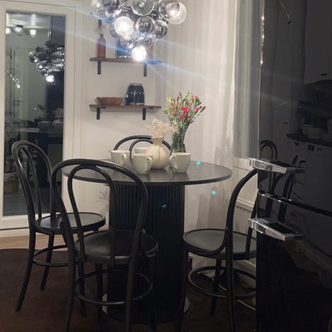 Hyvä käytetty kunto. Tuolit jämäkät, eivät heilu.