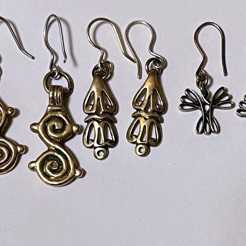 Kuvan pronssikorvakorut 20 euroa pari. Kunto ihan kohtuullinen, paitsi hopeakoukkujen kultaus on kulunut pois Ei rasioita eikä tarinalappusia. Nouto Oulusta tai postitus kirjeenä 3 euroa tai seurannalla 6.90/8,90