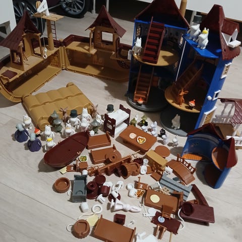 Ryhmä Hau-linna, puinen parkkitalo tarvikkeineen (Clas Ohlson), maatilan traktori eläimineen (eläimistä kuuluu äänet ja musiikkia, Clas Ohlsonilta), soiva ratti jossa musiikkia ja ääniä, vedettävä puinen Nooan arkki ja siihen kuuluvat puiset eläimet, palikkalaatikko jossa eri muotoisia palikoita, pinottavat Muumi-kiekot ja erikokoiset lelumukit.