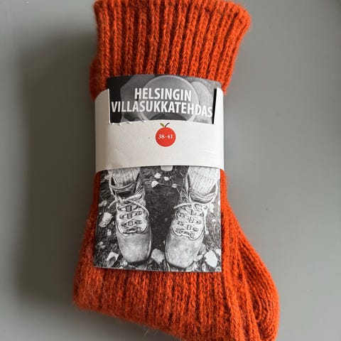 Uudet käyttämättömät Helsingin villasukkatehtaan villasukat.