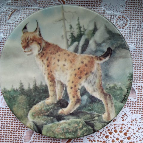 Pohjolan eläimet -sarjaa; Kimmo Pälikön Arabialle suunnittelema Ilves-seinälautanen, halk 23cm.