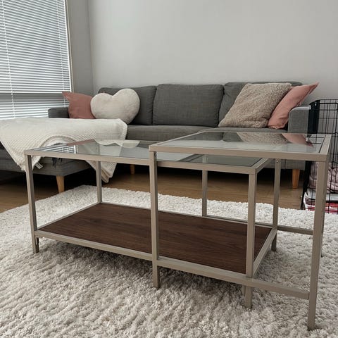 Ikean Vittsjö-sohvapöytä (halkaisija 75 cm) erinomaisessa kunnossa.