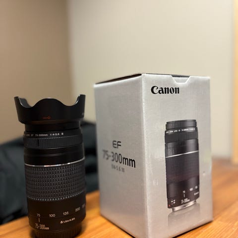 "Pöytälaatikosta" löytynyt Canon EF 75-300mm telezoom-objektiivi.
