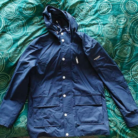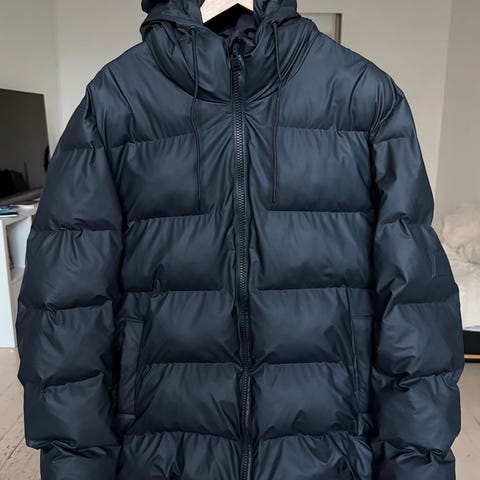 Rains Takki harmaassa värissä, valmistettu polyesteristä. Koko L, suunniteltu miehille. Sopii ulkoiluun ja arkipukeutumiseen.