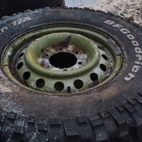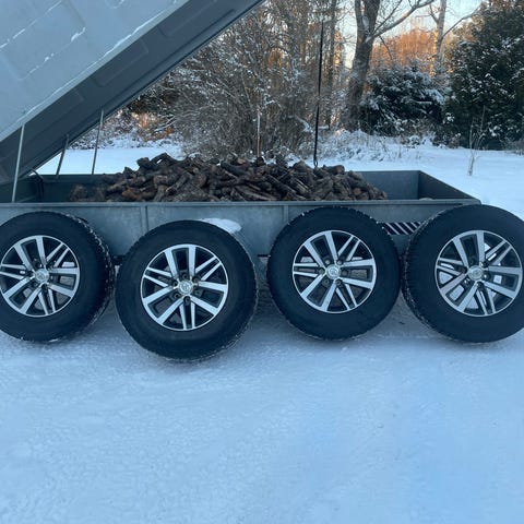 Päällä huonokuntoiset Nokian nastarenkaat. 170€.