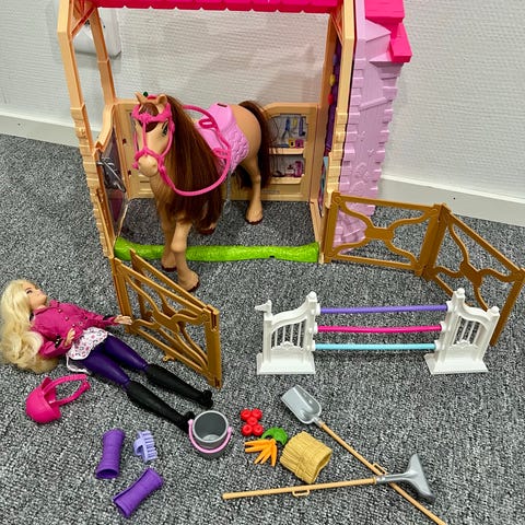 Myydään barbi hevosen tarha ja Schleich hevosen pesupaikka hintaa saa tarjota voi ostaa yhdessä tai erikseen