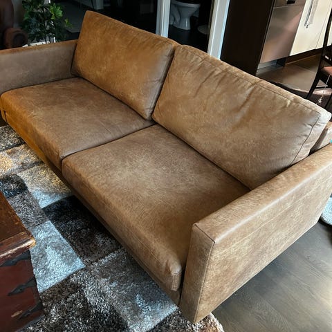Sohvassa on pieni lika tahra oikean puoleisessa istuin tyynyssä mutta tyynyjen verhoilut ovat irroitettavissa ja pestävissä.