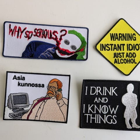 Postimerkin hinnalla 2,75e toimitus kirjeenä onnistuu myös. Yhdellä merkillä mahtuu max.9 haalarimerkkiä.