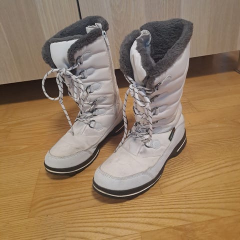 Kiinteä läppä, kapea ja melko matala malli. Täältä ostin edullisesti pojalle pihakengiksi, olivat rintavaan jalkaan melko ahtaat. Muutaman kerran olivat ruohonleikkuussa käytössä, siitä värjäymää. Pieni viilto pohjan sivussa (katso kuva). Muutoin hyvinkin siistit ja käyttökuntoiset. Juuri pesty.