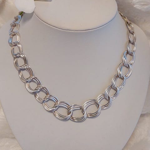 Ketju on hopeinen Jasseron-ketju, joka tekee siitä kokonaisuudesta kannettavan statement-riipuksen.