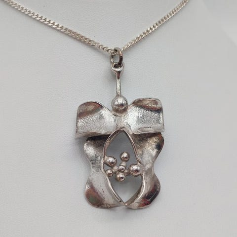 Suuri vintage-hopeinen yhdistelmäbroše, joka voidaan käyttää sekä broikkina että riipuksena. Tässä tapauksessa kappale myydään sopivan hopeisen ketjun kanssa, jolloin sitä voidaan käyttää myös riipuksena.