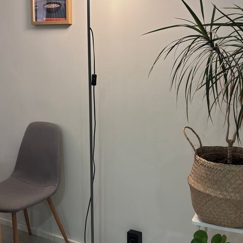 Myydään tyylikäs ja ajaton lattialamppu valkoisella varjostimella. Kytkin lampunkannassa. Sopii hyvin olohuoneeseen, makuuhuoneeseen, työhuoneeseen tai lukunurkkaukseen.