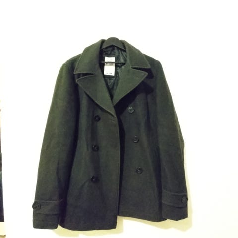Harmaa villa takki miesten koko 46. Takki on valmistettu villasta ja siinä on polyesterivuori. Takissa on neljä etutaskua, napitus edessä ja napit hihojen manseteissa. Sisällä on vetoketjutasku. Takki soveltuu ulkovaatteeksi.