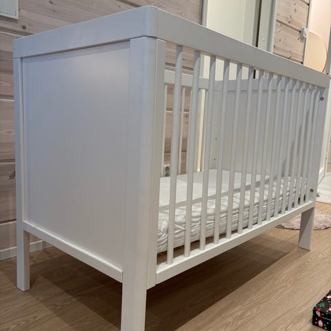 Hyväkuntoinen valkoinen troll pinnasänky. Sängyn tason saa kolmelle eri korkeudelle. Sänkyyn kuuluu pinnalaita sekä kuvissa näkyvä juniorilaita. Sängyn saa myös sivuvaunuksi.