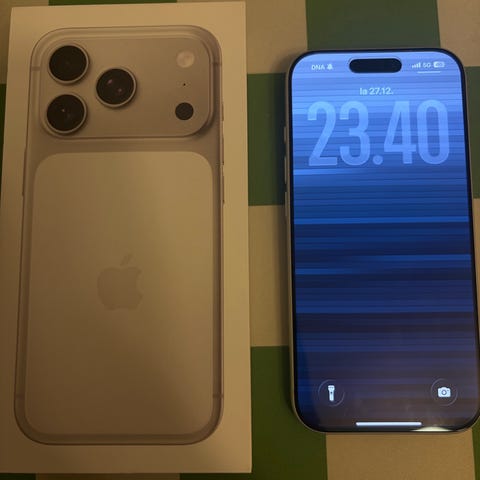 Iphone 17 Pro -puhelin, USB-C latausjohto, Sim -työkalu, pikaopas, myyntipakkaus, alkuperäinen kuitti.