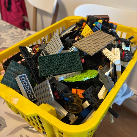 Sekalaisia legoja. Vähän minifiguurien osia.