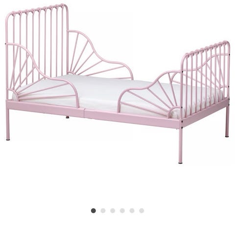 Ikean Minnen sängynrunko. Elämisen jälkiä näkyy mutta yleisilmeeltään siisti. Mukaan tulee patja. Petarikin löytyy ja sen saa halutessaan mukaan, mutta ei ole enää niin siisti.