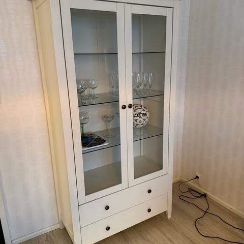Myydään valkoinen Jyskin vitriinikaappi. Mitat S35cm×L70cmxK151cm. Vitriini on jaettavissa myös kahdeksi matalammaksi kaapiksi. Toiset jalat löytyvät. Taustalevyssä pientä jälkeä vitriinikaapin sisällä, toisen kaapin taustalevyssä ei jälkiä ja hylly kokonaisuutena siistinnäköinen.