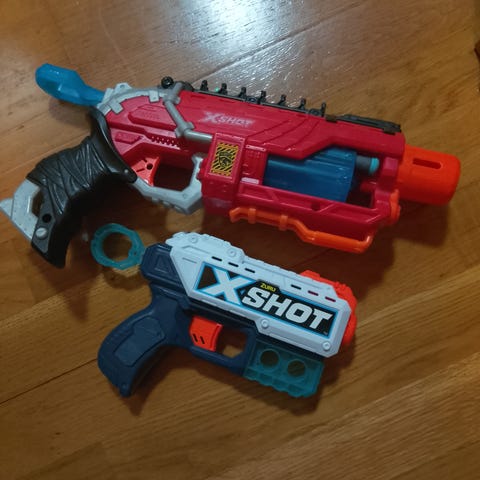 Kolme nalli pyssyä. Kaksi kivääriä ja ykisi pikku ase. Kahdessa muovi rulla nallit ja yhdessä nauha. X shot pyssyt niihin panoksia ei paljoa 2 taitaa löytyä. Ja muita imukuppi pyssyjä. Kaikki kerralla. Nalli pyssyt 2kk vanhoja kuin uusia. Panoksia jäljellä. Nyt kaikki yhden nalli kiväärin hinnalla!