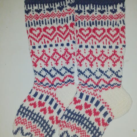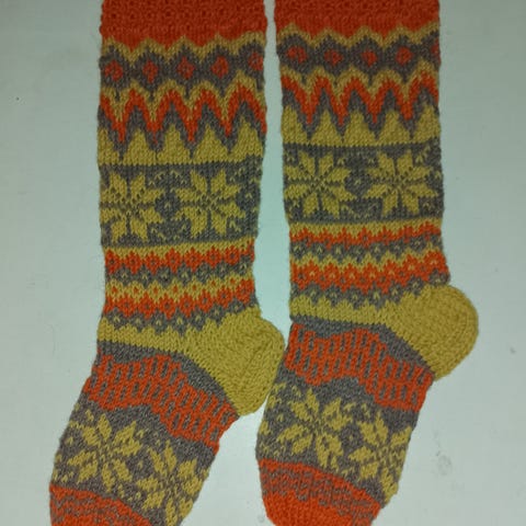 Käsintehdyt kirjoneule/villasukat 36-37