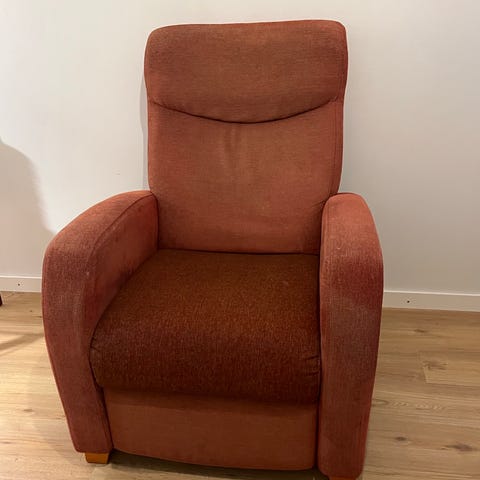Beigehtävä nojatuoli. Haku Vallilasta la 27.12. tai su 28.12. Muuton tieltä pois.