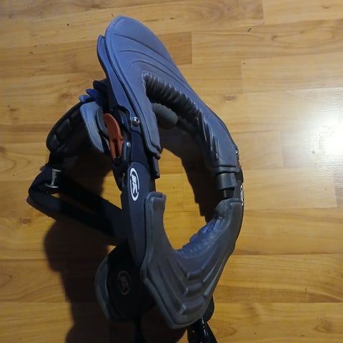 Tämä on ollut yhden kesän vähällä käytöllä ja jäi nyt tarpeettomaksi. Remmit ovat käyttämättömät ja itse niskatukikaan ei paljon uudelle häpeä. Tässä linkki tuotteeseen: