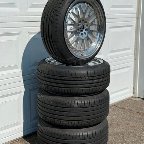 Style 128 vanteet kumeilla. 8.5/9.5 et 35. Takarenkaat aika loppu mutta etuset uudehkot. Toisessa takavanteessa pieni halkeama mutta ilmat pysyy ja pystyy ajamaan. Ei vaihtoja!