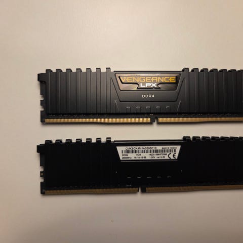 Myydään hyvälaatuista ja nopeaa RAM keskusmuistia Corsair Vengeance LPX DDR4 CL16 3200 MHz 16 Gt, 2 x 8 Gt kammat. Kunto erittäin hyvä, ollut melko kevyellä käytöllä ja toimivana juuri irroitettu, eivät ole pyörineet laatikon pohjalla.