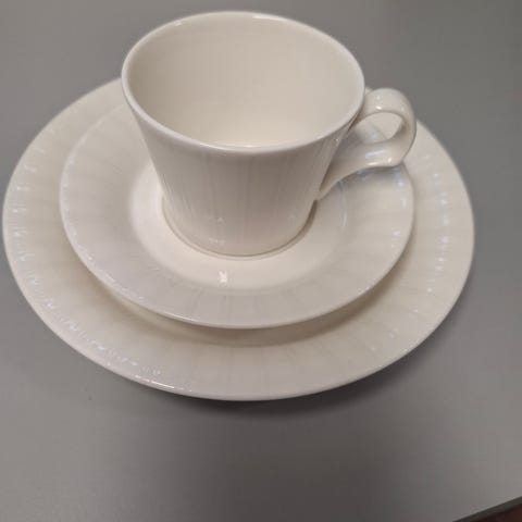 Myydään tarpeettomana lumi-astiastoa. 8 kpl kahvikuppeja ja tasseja,soppakulho,pitkä tarjoiluastia,kermanekka ja sokeriastia.