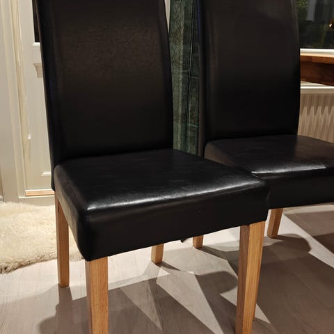 Myydään ylimääräiseksi jääneet 2 nahkaista ruokapöydän tuolia. Toisessa tuolissa näkyy kuvassa painauma koska tuolit ollut säilytyksessä. Voisin epäillä että painauma lähtenyt jo.