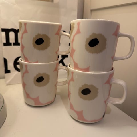marimekko juhla unikko vaaleanpunainen - kulta mukit 2 kpl