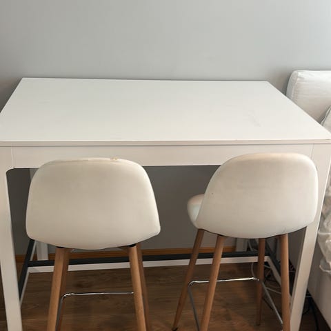 Kaksi kappaletta korkeampia tuoleja, mukavat istua.
