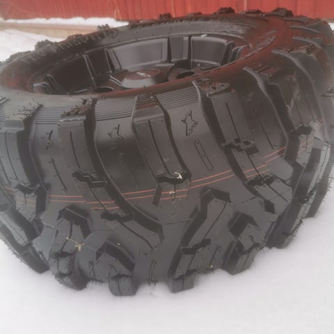 Eli iha uudet x-terrain maasto renkaat tullu meijän mönkkärin mukana ei ikinä oo tullu käyttöö niille eli ajamattomat nouto espoosta