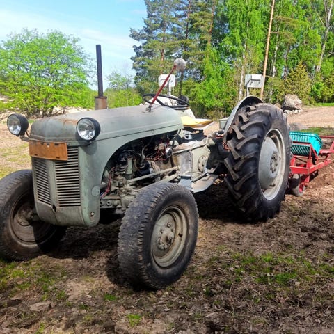 Myydään vanha ”harmaa-fergu” vm.55. Ei ole pariin vuoteen käytetty, mutta toimivana halliin ajettu. Diesel. Takakauha mukaan.