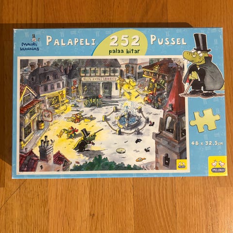 54-osainen palapeli, jonka koko on 29,7 x 42 cm.