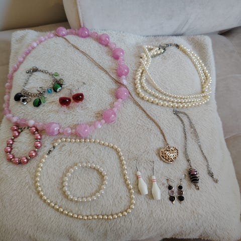 Kaulakoruja, korviksia rannekkeita.