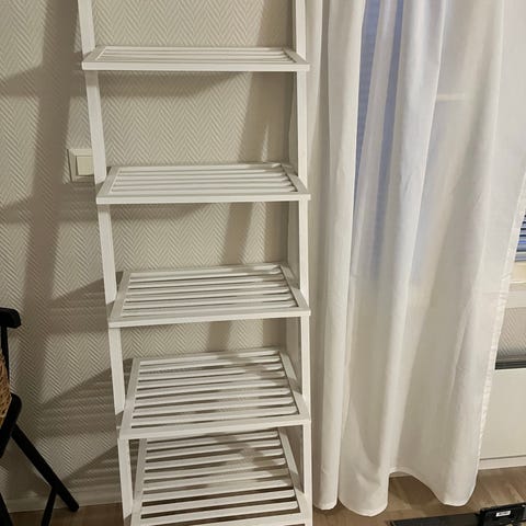 Myydään valkoinen tikashylly hyvässä kunnossa. Sopii täydellisesti kasveille, kirjoille, koristeille, kylpyhuoneeseen tai esillepanoon.
