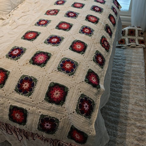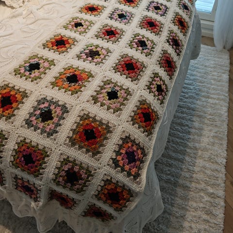 Myynnissä uusi isoäidin neliöt esim. Sängynpäätypeitto.
