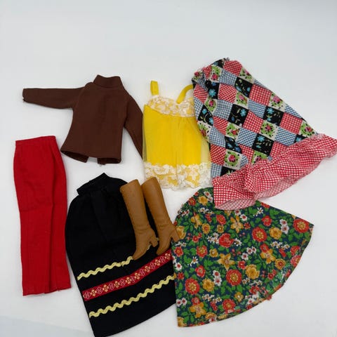 Vintage Barbie Best buy Fashion mekot 70’luvulta.Sinisen mekon takana tahroja, hunnun kuminauha on poikki. Pk 2,75€