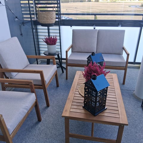 Musta runko ja muhkeet tyynyt. Erittäin hyvät istua. Ei mitkään heppoiset. 2+1+1 ja pöytä. Uudet