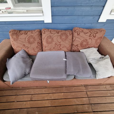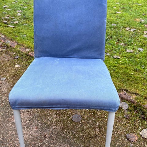 Kukkanojatuoli, jossa kangas vähän purkautunut joissain kohdissa (kuvissa näkyy).