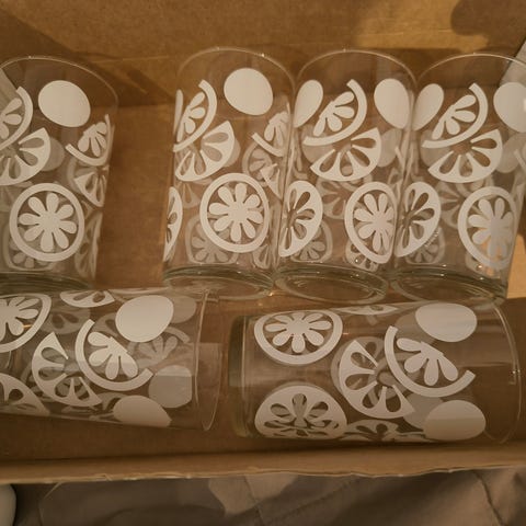 Vintage juomalasit 6 kpl – Mahdollisesti Ravenhead, 60–70-luku