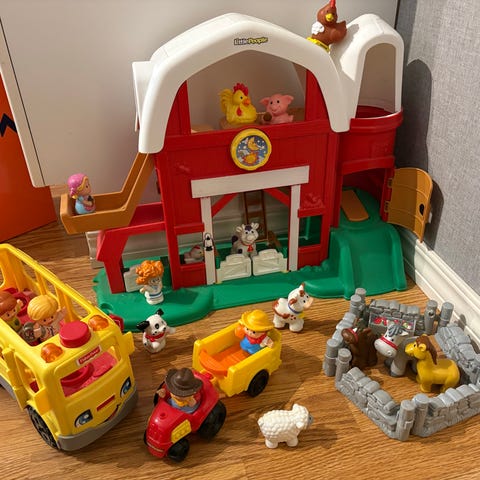 Myydään muovinen maatilaa, settiin kuuluu osan Fisher price ukkeleita sekä Little People.