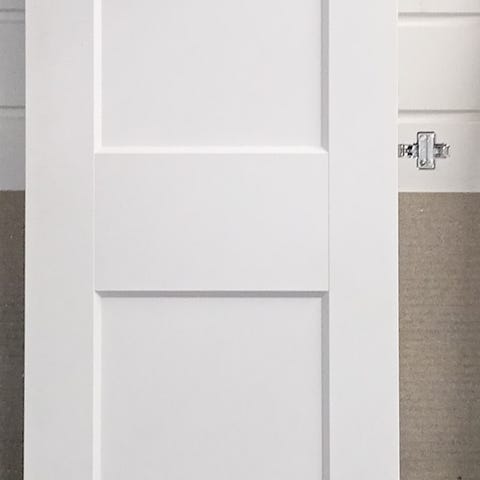 Valkoinen sisäovi, jossa on metallinen lukko ja krominen ovenkahva. Ovi on valkoinen ja soveltuu sisäkäyttöön. Lukko on Abloy -merkkinen, valmistettu vuonna 2014. Mitat 92 x 205cm.