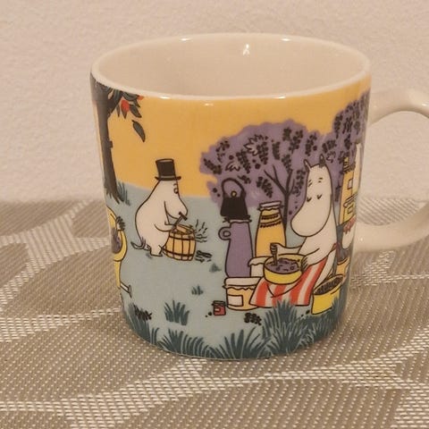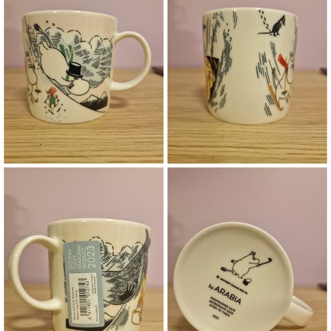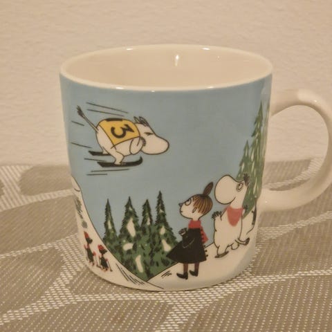 Tarrallinen muumimuki. Mäenlasku 2023 sesonkituote.
