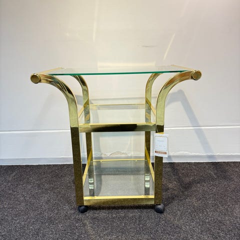 Vintage, retro, kolmiosainen, messinkipöytä, lasipöytä, messinkinen, sohvapöytä, sivupöytä, pieni pöytä, pikkupöytä, design, kotimainen, messin, vanha