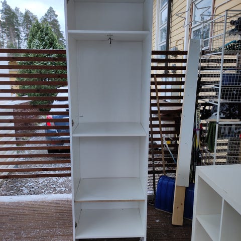 Annetaan siistikuntoinen vaatekaappi hyllyineen. L: 50cm, k: 237cm s:60cm.