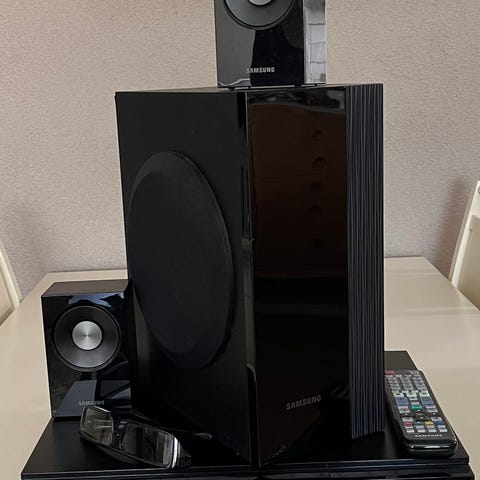 Samsungin 2.1 setti, tarkemmat tiedot kuvassa. Subbarissa joku tahra päällä.